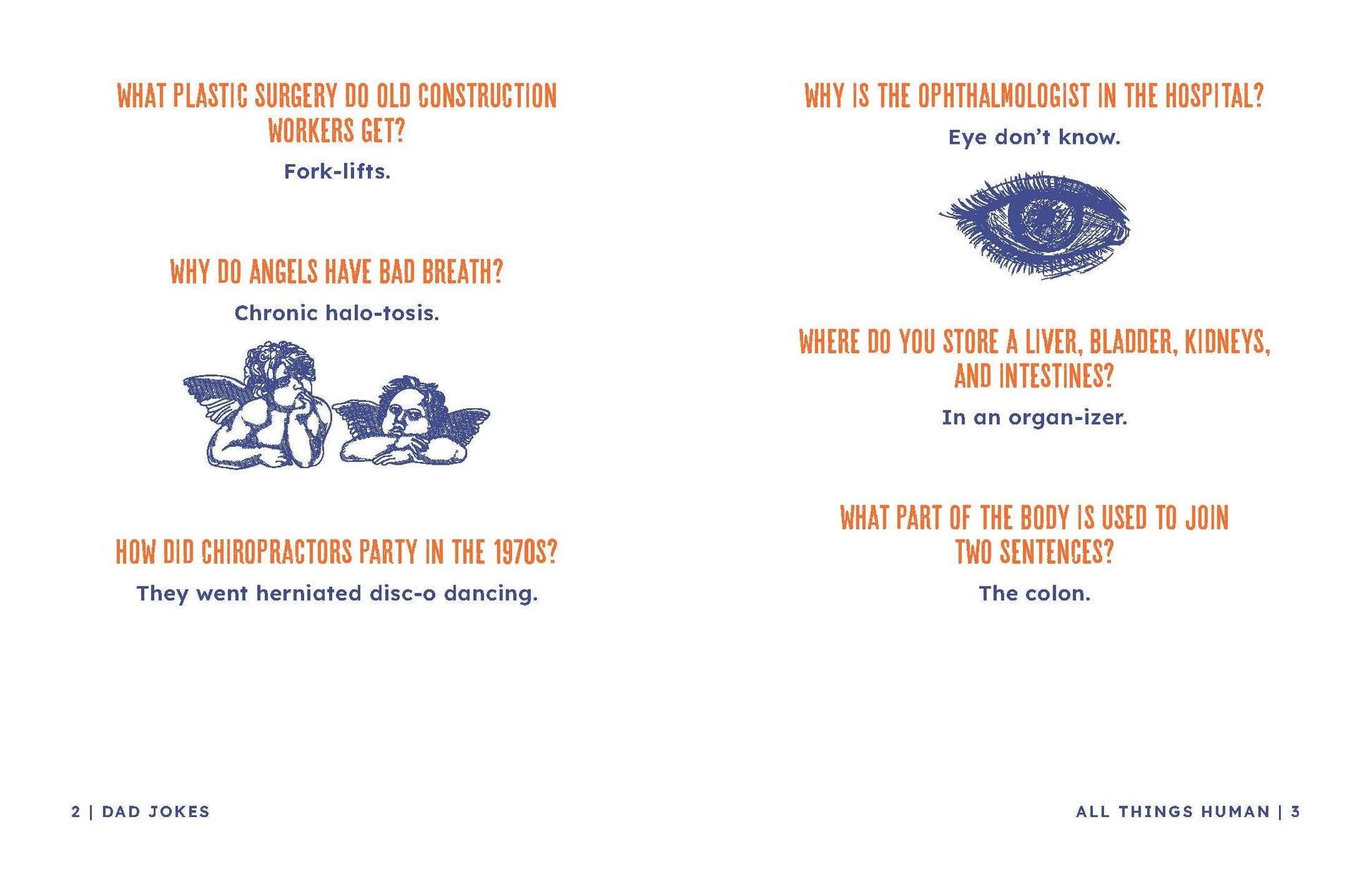 The ultimate collection of awfully hilarious jokes that will have your stomach crunching from nonstop laughter. The best eye-rolling, corny punch lines and gags all in one place! This assemblage of quick-witted puns and equally cringeworthy groaners offers more than 600 quips so bad that they're actually funny. Organized into themes for any occasion, you'll find everything from snappy-yet-terrible one-liners to embarrassing dialogue. It will keep the whole family howling (and begging you to stop) for hours upon end. Paperback book; 5.5 x 7 inches; 192 pages.