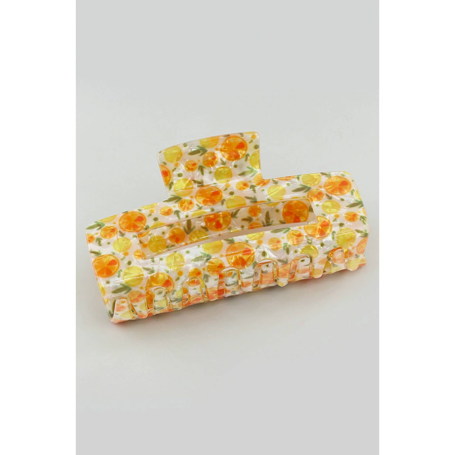 Add a bold pop of color with this marbled acrylic orange print hair clip. Measuring 4 inches long it blends function with flair for a secure hold and standout style. Perfect for pinning back hair with a bright cheerful twist that turns heads all day.