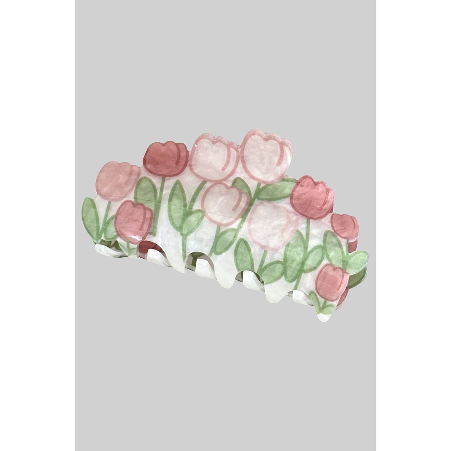 Add a touch of floral flair to your hair with this marbled acrylic tulip print hair clip! Measuring 3.5 inches in length, it's the perfect accessory to hold back your locks while making a stylish statement. Bold, beautiful, and practical it's a must have.